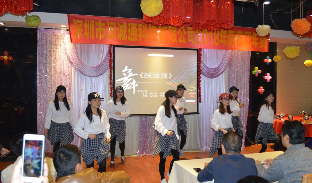 晚會上的節(jié)目都是由漢誠通員工自行編排,首先登場的是漢誠通美女團帶來的舞蹈《踩、踩、踩》,隨著背景音樂響起,這個舞蹈瞬間吸引了在場所有人的眼球。