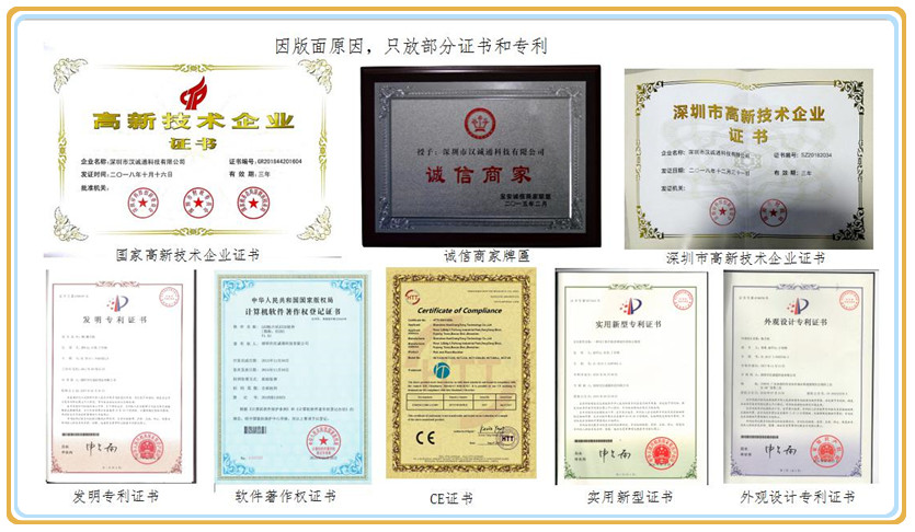 漢誠通科技的研發(fā)團隊的核心人員擁有15年以上的軟件開發(fā)和硬件開發(fā)的行業(yè)經(jīng)驗。貼片機的軟件系統(tǒng)、貼片機硬件結(jié)構(gòu)都申請了國家專利,且漢誠通多次榮獲國家高新技術企業(yè)榮譽稱號,還獲得了誠信商家的牌匾。
