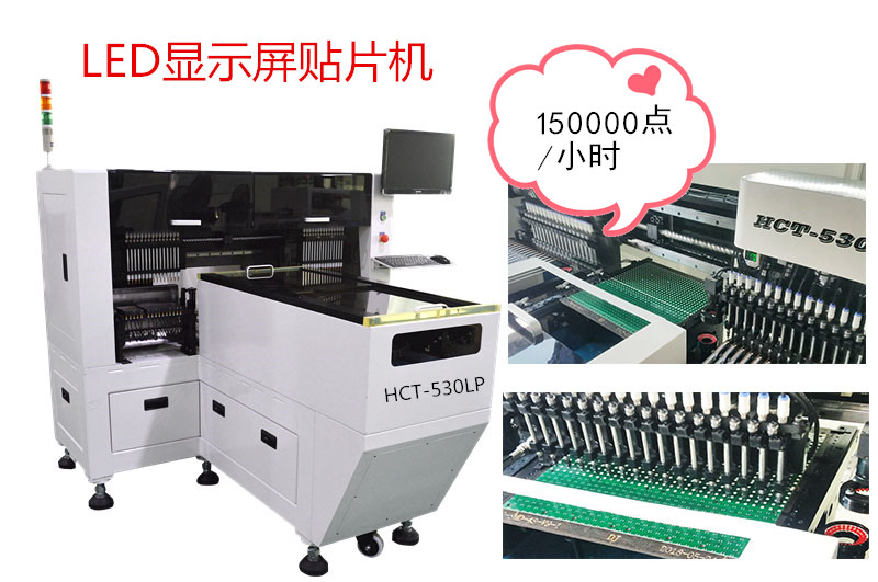LED顯示屏的普及為我們?nèi)粘I钤錾簧?,其工藝難點(diǎn)還是對(duì)精度要求高,需要高精度的貼片機(jī)來(lái)完成工作,漢誠(chéng)通科技為滿足工藝要求,特研發(fā)一款LED顯示屏貼片機(jī),其優(yōu)點(diǎn)是高速度,高精度,頭部間距可根據(jù)客戶板的需求,設(shè)置間距。使貼片機(jī)能最大限度提高速度。